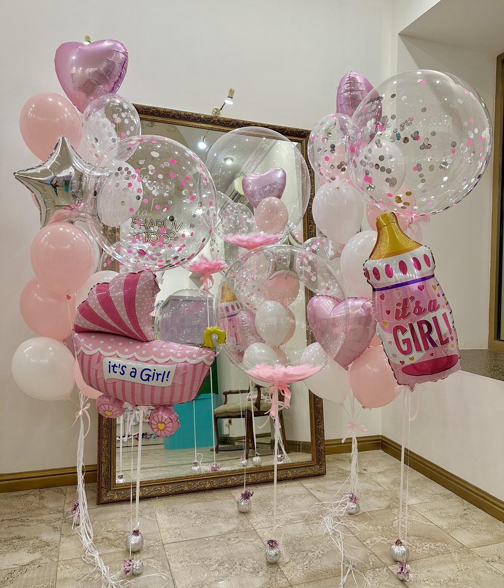 2 Баблса прозрачных с конфетти розово-серебристым-белыми кружочками