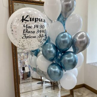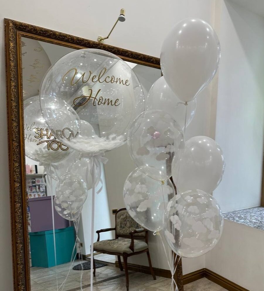 Баблс прозрачный с перьями белыми и индивидуальной надписью