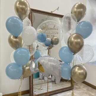 Большой стеклянный белый шар с надписью черной индивидуальной и бантики розовые