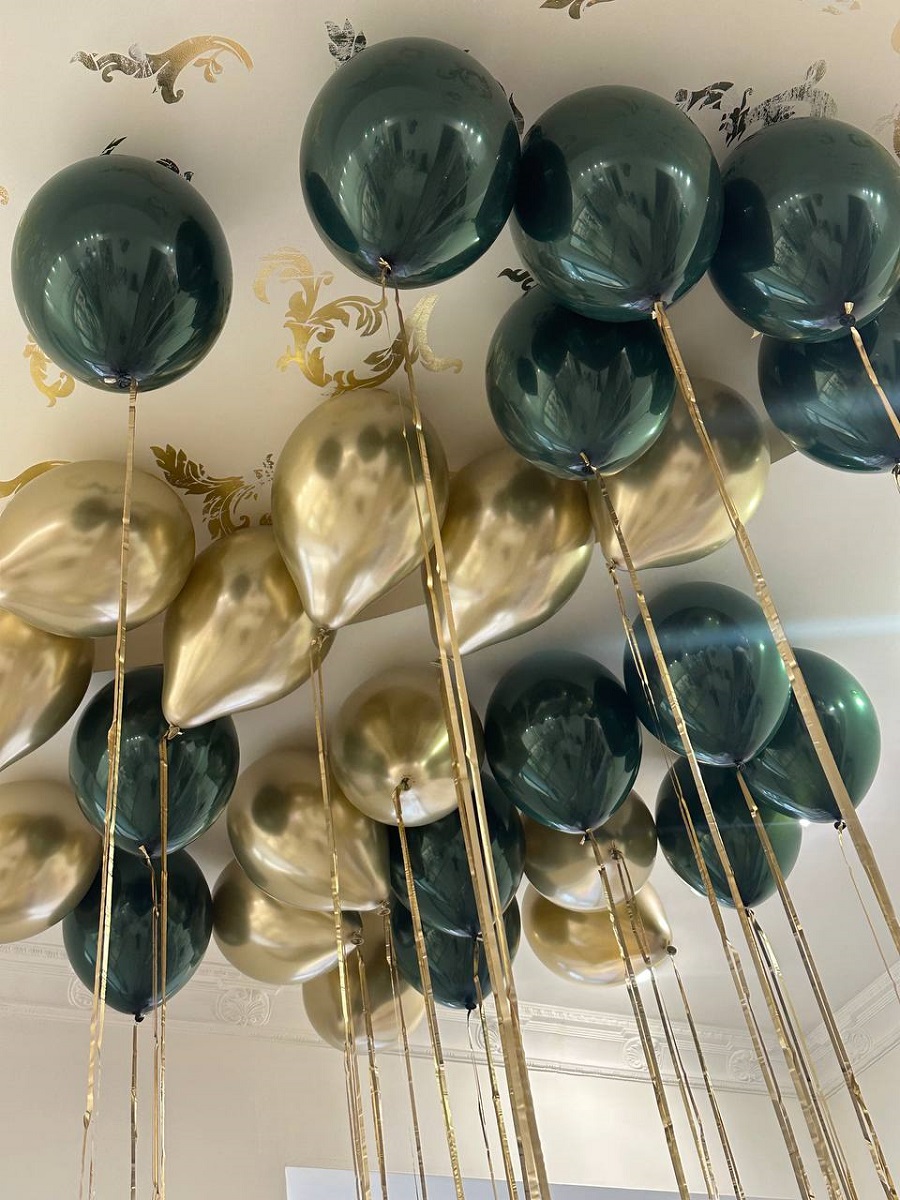 28 шаров на дождике золотом матовом(золото хром и черный в кристале зеленом)