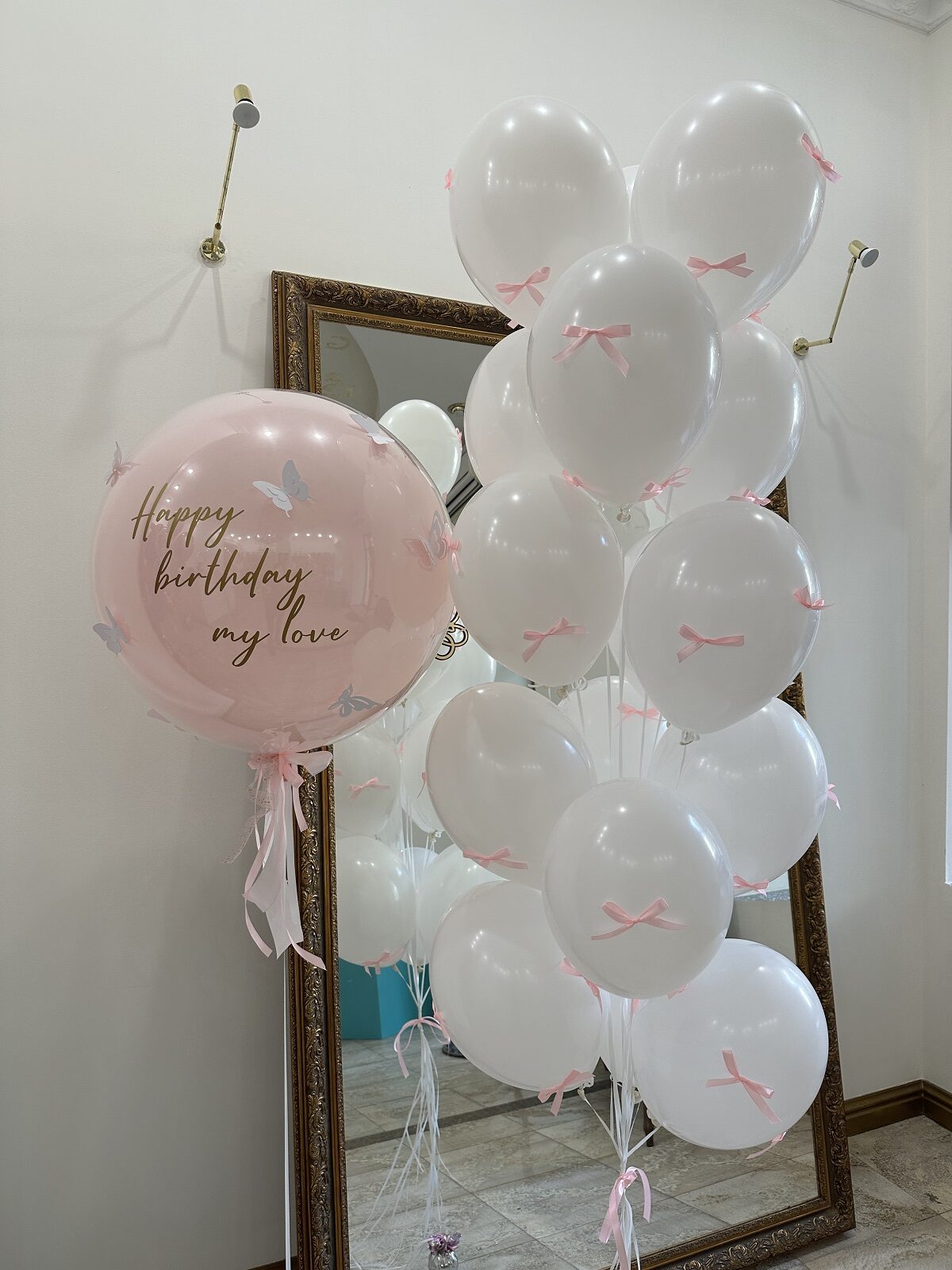 Большой стеклянный розовый макарун шар с белыми бабочками и индивидуальной надписью золото